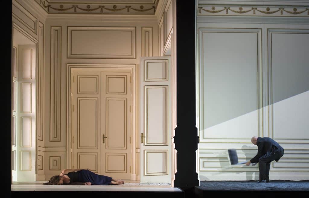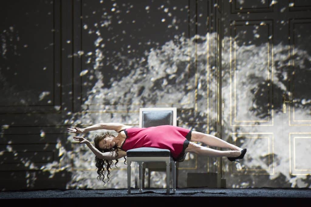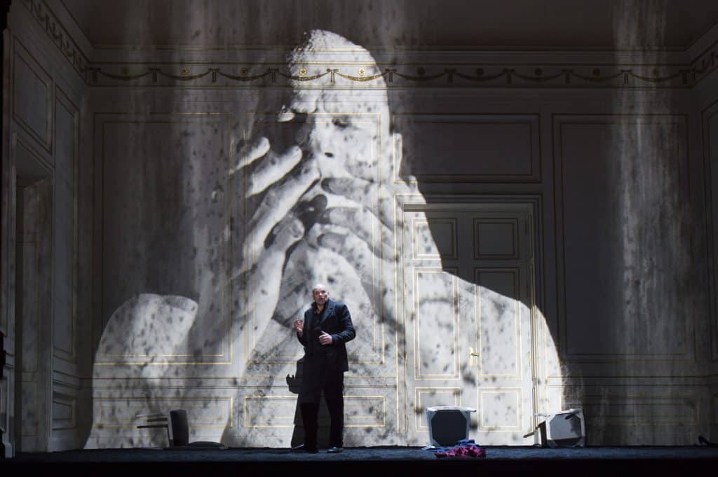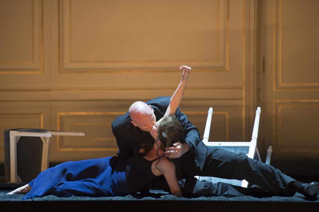L’opéra est divisé en quatre séquences, et non en cinq actes comme chez Racine, d’où un resserrement de l’action. C’est durant la troisième séquence qu’a lieu la poignante confrontation entre Titus et Bérénice, en prélude au renoncement. On retrouve les mêmes mots, d’une désespérante beauté, que dans la pièce, mais la partition leur donne d’autres reliefs, d’une intensité à couper le souffle. Les premières phrases sont dites dans un climat d’hystérie et de fièvre, où le chant se transforme en cri. Les deux protagonistes tombent à terre, épuisés, sur « Il faut régner », à bout de forces et de mots. Enfin, sur « Dans un mois, dans un an, comment souffrirons-nous », les voix atteignent une vraie sensualité, assez proche finalement des grands duos d’amour à l’opéra ; dans « Tristan et Isolde » aussi, c’est une passion impossible. Cette scène montre la formidable direction d’acteurs de Claus Guth, à laquelle Barbara Hannigan et Bo Skovhus répondent par un incroyable engagement.