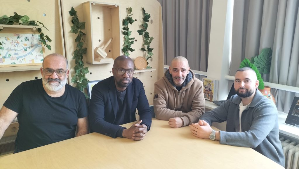 M’hamed Mansar, Davis Moukala, Ahmed Ben Saïd et Anthony Calot (de gauche à droite) : tous les quatre bénévoles et papas d’enfants licencié·es au club. Photo : Armel Bihan, le 16/02/2026.