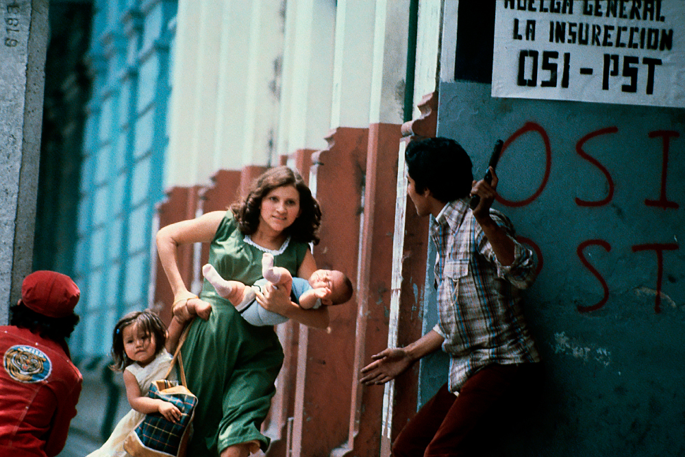 Salvador-1980.-Une-femme-enceinte-fuit-les-tirs-avec-ses-enfants-lors-des-obsques-de-larchevque-Romero
