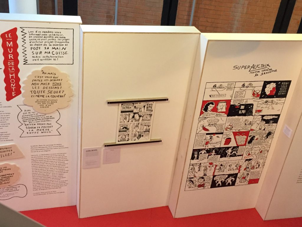 Outre les originaux, la vidéo rythme elle aussi la visite. Utilisée comme outil de diffusion des témoignages de trois bédéistes, elle donne la parole à Ulli Lust, Catel Muller et Chloé Wary qui s’expriment ainsi autour de discussions telles que leur rapport au militantisme ou l’utilisation du terme autrice.