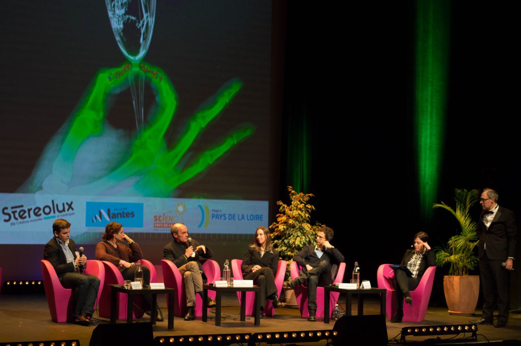 C’est Jean-Noël Trochu, professeur de cardiologie et praticien hospitalier qui ouvre le deuxième débat de la soirée avec une présentation des avancées scientifiques en matière de transplantation cardiaque. Opération lourde et non sans risques pour le patient, la greffe du cœur n’intervient aujourd’hui qu’en phase terminale d’une insuffisance cardiaque : quand le cœur n’est plus capable d’effectuer correctement son travail de pompe circulatoire du sang. Avec un taux de 69% de survie au bout de la première année de greffe, la transplantation cardiaque représente un dernier recours, en raison des nombreux risques de rejets constatés. Par ailleurs, scientifiques et médecins expérimentent la possibilité d’un greffon de cœur entièrement artificiel, avec un système de pompes et une assistance circulatoire autonomes, mais les échecs constatés après plusieurs essais cliniques ne font que repousser les chances de voir un jour la réussite d’un greffon de cœur artificiel total.