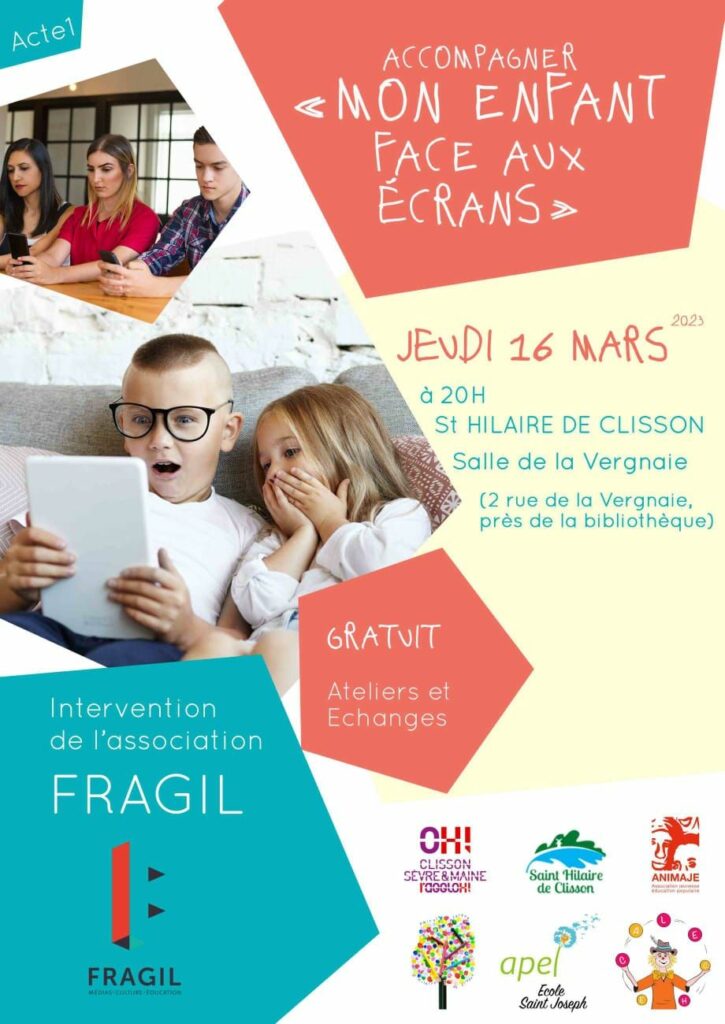 Depuis plusieurs années, Fragil est régulièrement sollicitée pour animer des temps d’information, d’échanges et de débats à destination des parents sur le thème de l’utilisation des écrans par les enfants et les plus jeunes.
