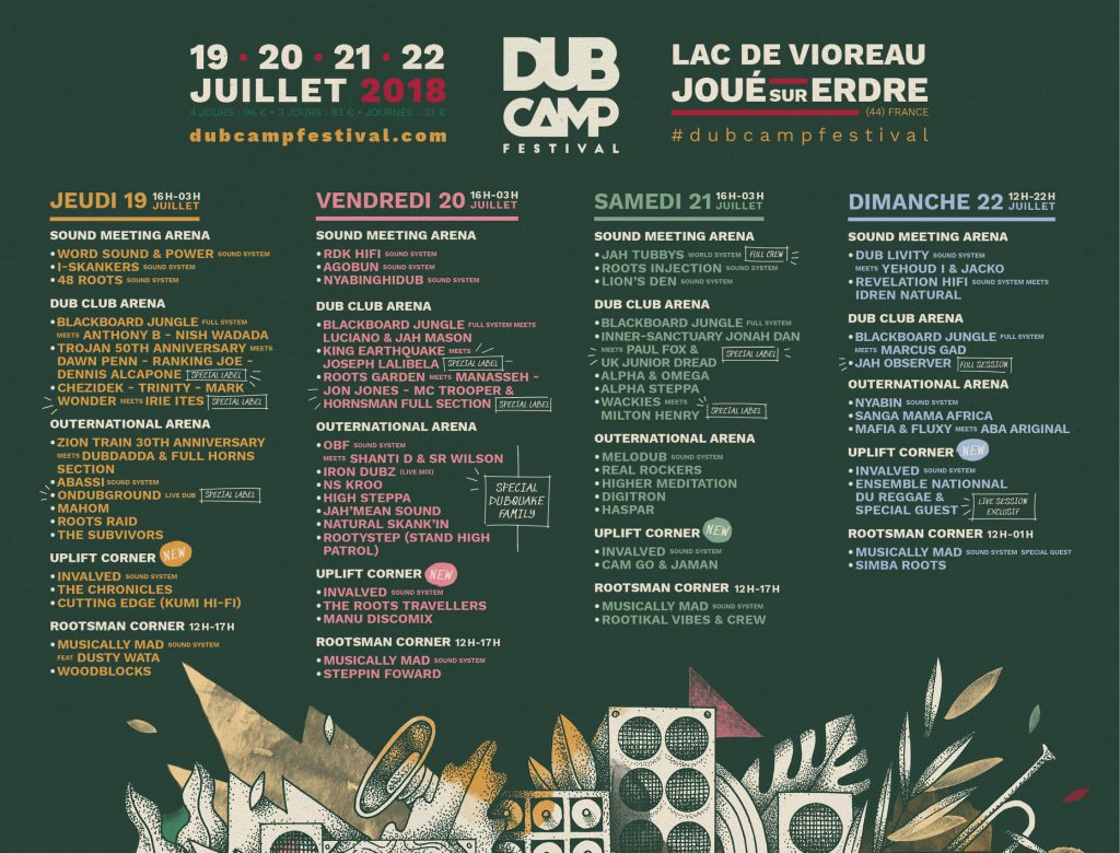 Organisé en 2014 par l’association Get Up !, le Dub Camp festival, premier du genre entièrement dédié au mouvement sound system, avait réuni au Pellerin (44), en extérieur et sous trois chapiteaux tous les fans de reggae, de dub et de culture sound system. Après un passage par Carquefou en 2016, le Dub Camp s’est installé sur les bords du Lac de Vioreau depuis l’année dernière.