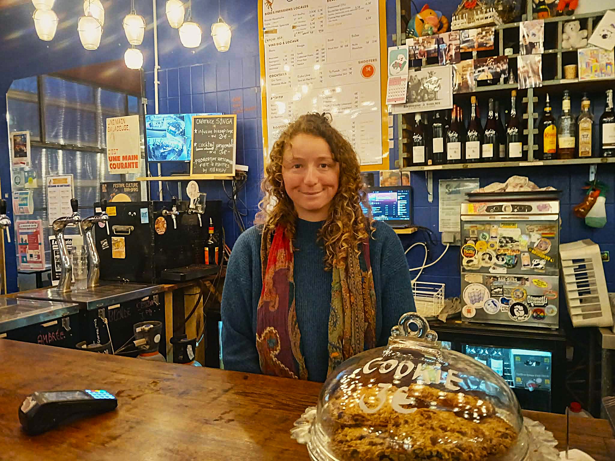 Sarah Huvelin, responsable du site Le Wattignies et de la programmation du collectif Commun’Île au comptoir du bar. © Farnoud Pierre 19/11/2025