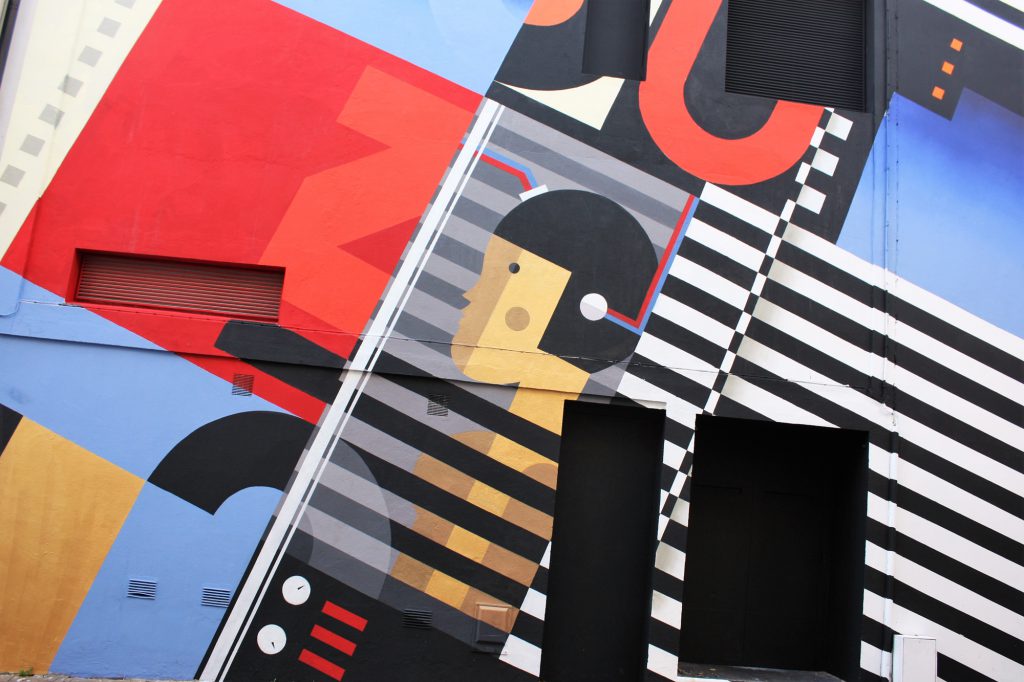Dino Voodoo et l’Outsider pratiquent le graffiti depuis plusieurs dizaines d’années. « C’était assez malin qu’ils aient eu l’idée d’une collaboration entre nous deux. On se connaissait parce que c’est un petit milieu et que tout le monde se connait, mais on n’avait jamais collaboré sur un projet de cette ampleur. Dino est plus habitué au travail de représentations humaines et de personnages et moi plutôt de compositions géométriques et de lettres. » Leur complicité ne fait pas de doute et le résultat est saisissant. Les couleurs primaires dominent cette œuvre graphique, inspirée du film Metropolis de Fritz Lang.