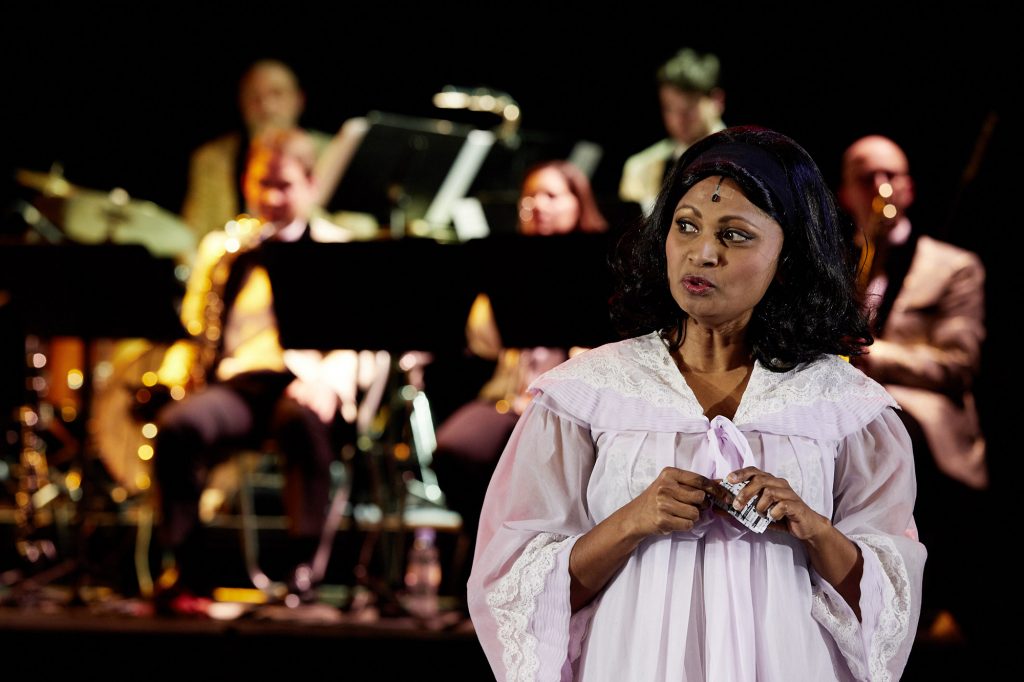 La chorégraphie, assurée par Fanny Aguado (qui jouait le double muet de Violetta dans « Traviata ») est essentielle, et également très inventive. Elle accentue l’aspect délirant et même surréaliste de certains passages, comme la scène extravagante de la veuve d’un colonel, où la soprano Morgane Bertrand joue avec ses beaux aigus de façon désopilante. On se réjouit de retrouver, dans le rôle de Pauline, Lucile Verbizier, émouvante Colette dans « Le devin du village » de Rousseau l’année dernière, dans un tout autre répertoire.