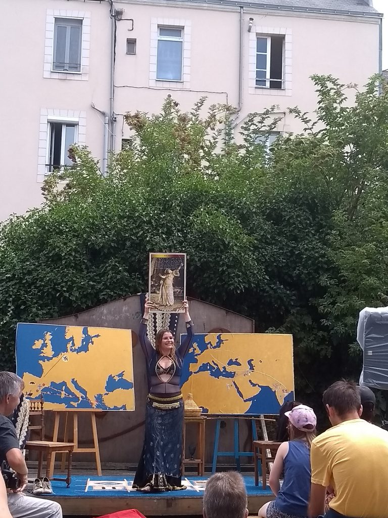 A 15h15, une artiste particulièrement remarquée cette année, Carine Cotinneau, a imaginé une conférence dansée sur l’histoire de la danse orientale, une prestation originale et magnifiquement interprétée.