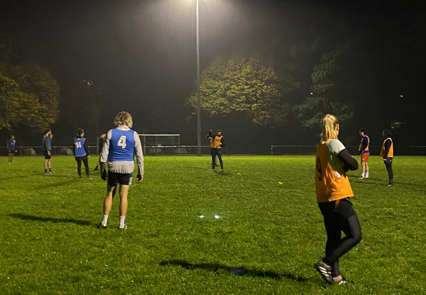 Une quinzaine de joueur·euses est présente à l’entraînement, reflet de la mixité propre au touch rugby. Issu du rugby à XIII et développé dans les années 1960 en Australie, ce sport international met l’accent sur la vitesse, l’agilité et l’absence de placage, permettant une pratique plus inclusive.