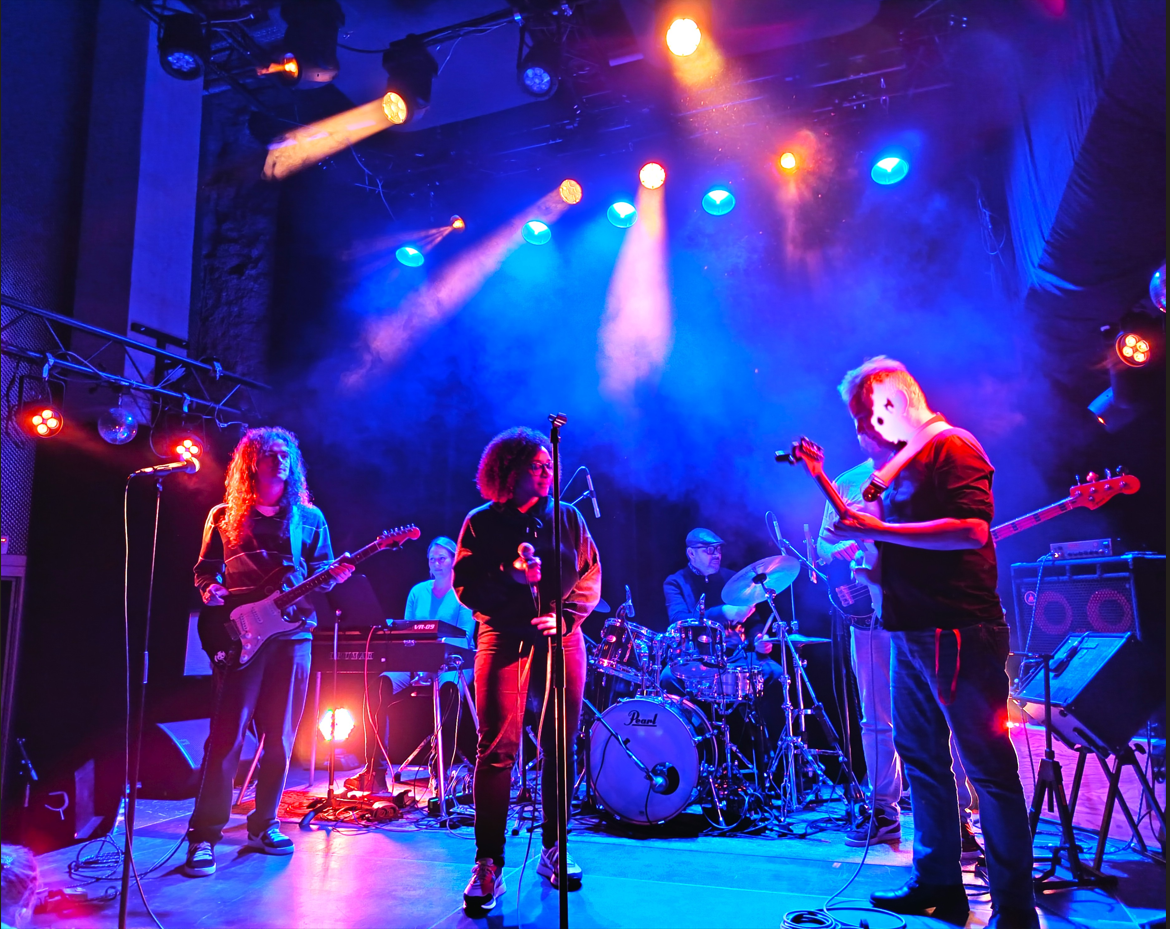 Première représentation pour ce groupe de moins de 18 ans de moyenne d’âge et mixte. Iels ont repris des morceaux à la mode comme Un Meilleur Nous de Theodora, mais aussi des titres plus anciens comme la chanson Valerie d’Amy Winehouse. Malgré le trac, le groupe constitué d’Augustin à la guitare, Lïa au clavier, Elliot à la basse, Jil au chant et Théo à la batterie, a su faire face à leur public composé surtout de leurs proches : » J’ai ramené tout mon arbre généalogique », nous confie en souriant Jil. © Farnoud Pierre 13/01/2026