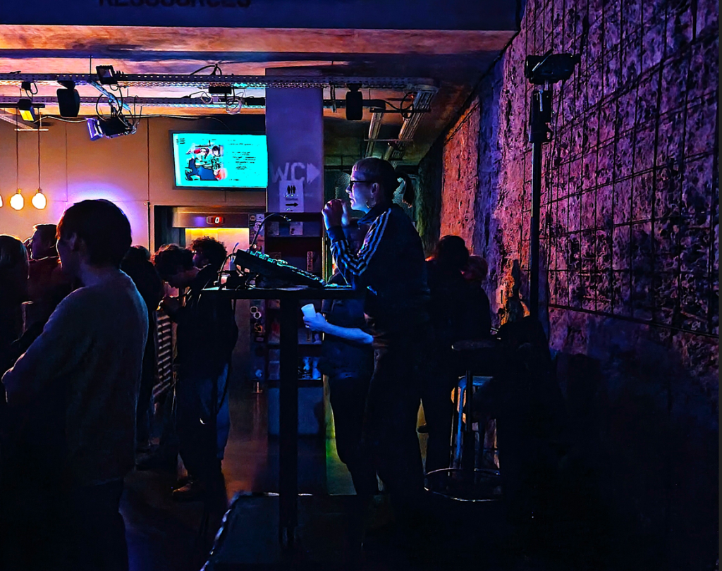 Passage du « projet clavier », un groupe formé par trois claviers et une chanteuse, Lïa. Elle présente ses propres compositions à Trempo devant un public conquis. © Farnoud Pierre 13/01/2026