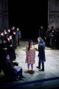 France, Angers, 2023-03-02. Rehearsal of Luisa Miller, opera by Guiseppe Verdi. This opera in three acts composed in 1849 is a key work of Verdi, which already gathers the ingredients that will make his success: human and social drama, a relentless music, theatrical power. Libretto by Salvatore Cammarano, after Kabale und Liebe by Friedrich Schiller, directed by Guy Montavon, coproduction Angers Nantes Opera – Opera de Rennes – Theater Erfurt, in partnership with Orchestre National des Pays de la Loire and the Angers Nantes Opera Chorus – 02 March 2023 – Angers – Grand Theatre. Photography by Delphine Perrin / Hans Lucas. France, Angers, 2023-03-02. Repetition de Luisa Miller, opera de Guiseppe Verdi. Cet opera en trois actes compose en 1849 est ouvrage cle de Verdi, qui rassemble déjà les ingrédients qui feront son succès : drames humains et sociaux, une musique implacable, puissance theatrale. Livret de Salvatore Cammarano, d apres Kabale und Liebe de Friedrich Schiller, mis en scene de Guy Montavon, coproduction Angers Nantes Opera – Opera de Rennes – Theater Erfurt, en partenariat avec Orchestre National des Pays de la Loire et le Choeur Angers Nantes Opera – 02 mars 2023 – Angers – Grand Theatre. Photographie de Delphine Perrin / Hans Lucas.