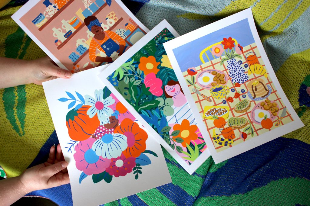 Entre la gestion de sa boutique en ligne, de sa page Patreon et des collaborations régulières avec Canevas Fatal, la marque de canevas de son compagnon Gauvain Manhattan, Marie renoue en ce moment avec le plaisir de peindre des illustrations pour elle-même.