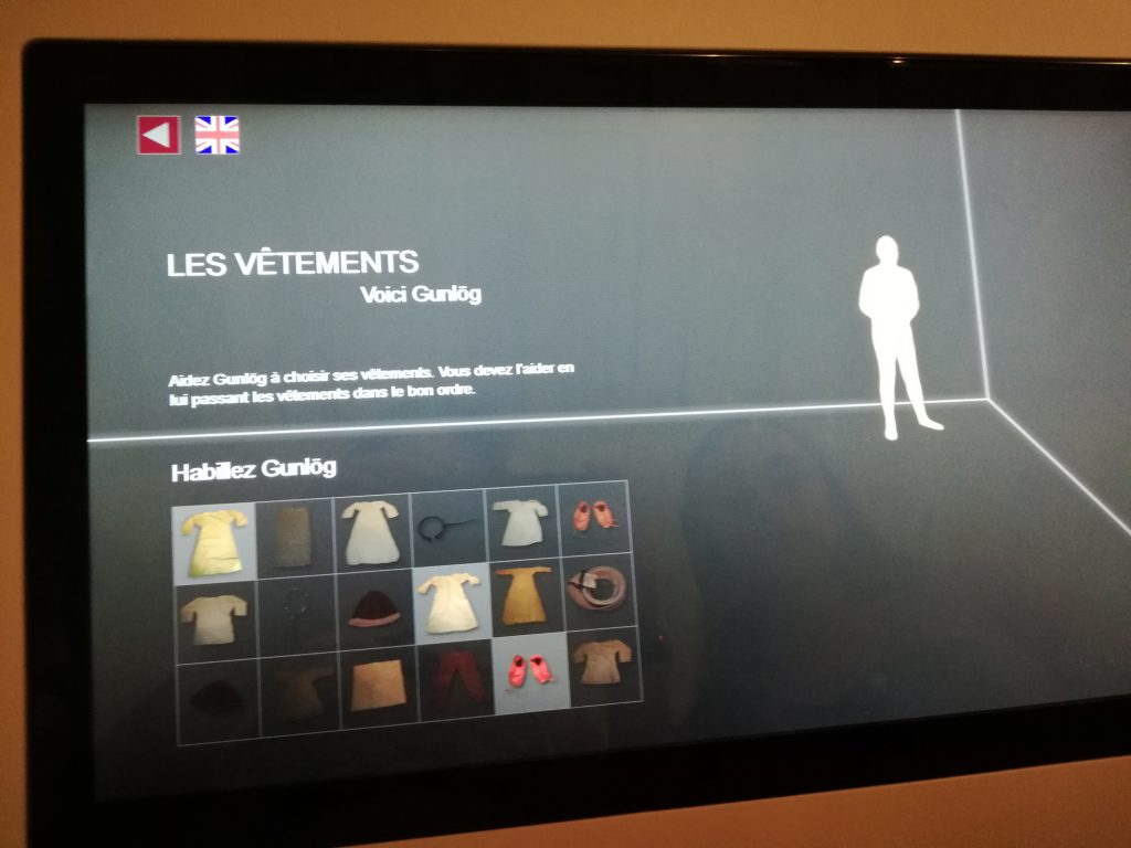 Par la suite, l’exposition nous laisse admirer l’habitat, le mode vestimentaire. D’ailleurs à ce sujet, des écrans interactifs permettent aux visiteurs de tester leurs connaissances en habillant de petit scandinaves en 3D.