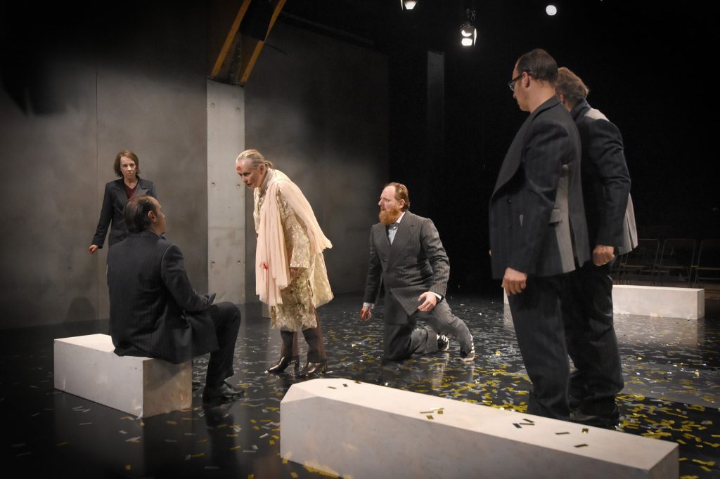 Martine Chevallier : Quand le metteur en scène Rodolphe Dana m’a convoquée, en avril dernier, pour me dire qu’il me donnait le rôle de Jules César, je lui ai demandé quel était son but. La seule réponse tangible qu’il m’a donnée a été « Pourquoi pas ». Les rôles de Marc-Antoine et de Cassius allaient aussi être tenus par des comédiennes, je n’ai pas poussé le questionnement plus avant. Je me trouvais de plus un peu pressée par le temps, j’aime les challenges et le risque, et Jules César était ma dernière pièce en tant que sociétaire au Français. J’ai commencé à apprendre le rôle, mais au cours du travail en amont, le texte a été modifié pour finalement être réduit de près d’une heure trente. Nous n’avons vraiment pu apprendre la pièce dans sa forme définitive qu’au moment où nous l’avons répétée, en juillet et en septembre. Pour moi, le costume, mais aussi les chaussures, étaient très importants pour incarner cette figure d’empereur, car tout passe par la démarche. Je suis partie en vacances avec l’idée d’un costume qui ne me convenait pas, et qui ne pouvait pas fonctionner avec ce que je voulais donner au personnage. Il fallait vraiment que je rentre en scène en faisant admettre que j’étais Jules César, et que la première impression soit la bonne. Je n’ai pas été la seule dans la troupe à avoir un tel souci, je me suis permis de dire ce qu’il en était, et des choses ont été modifiées, même si je n’ai pas eu vraiment ce que je souhaitais. Au fil des représentations, j’ai changé certains détails pour avoir plus de coffre. Je ne me suis pas emparé du personnage ; César est un homme entouré, mais qui suit une route de pouvoir solitaire. J’ai suivi mon instinct pour le jouer, avec les camarades que j’avais en face de moi. La bifrontalité pour cette pièce a été difficile, avec des spectateurs de chaque côté, et certains acteurs faisaient plusieurs rôles. La bande-son était malgré tout extraordinaire, et elle nous a énormément aidés, comme s’il y avait un onzième acteur. Jefferson Lembeye a fait là un formidable travail. Petit à petit, j’ai construit le personnage en évacuant ce que je représentais physiquement. Notre travail a été complexe à cause de tous ces empêchements, mais ça a finalement donné quelque chose de possible. Nous jouions à chaque représentation sur un fil, comme des funambules ou des atomes libres, en tentant de nouvelles choses, au lieu d’évoluer dans une conception architecturée où nous aurions pu inventer. Mais nous avons tous été consciencieux jusqu’au bout et le public a été content dans l’ensemble, car nous n’avons pas cessé de creuser nos personnages. C’est difficile d’incriminer un metteur en scène aussi sympathique, qui de plus est un bon acteur, mais je me devais de dire les choses avec honnêteté. J’ai été très heureuse de travailler avec mes camarades, mais j’aurais aimé jouer mon dernier rôle de Sociétaire à la Salle Richelieu…