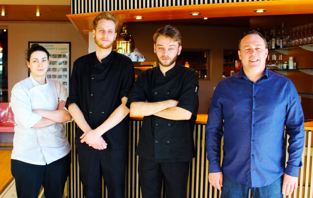 Le ventre repu, nous avons eu la chance de rencontrer la nouvelle équipe, visiblement jeune. « Un point fort ! », souligne Margaux. « Avoir une équipe âgée de 25 à 29 ans en cuisine amène une énergie et un dynamisme incroyable. Stéphane Brault, le gérant, a d’ailleurs décidé de ne pas mettre un chef en cuisine, mais plutôt un meneur. Les cuisiniers travaillent ensemble aux menus, aux commandes et à la prise de décisions. Ce partage des tâche et ce « travailler-ensemble » permettent une vraie rencontre de goûts différents dans les assiettes et dans les menus », poursuit-elle.