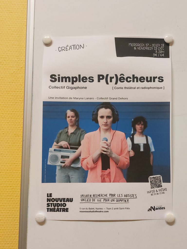 À travers une fable satirique inspirée de faits réels, le Collectif Gigaphone explore les luttes écologiques contemporaines. Présentée les 17, 18 et 19 décembre au Nouveau Studio Théâtre, la pièce de théâtre radiophonique Simples P(r)êcheurs mêle humour, fiction et engagement pour inviter le public à réfléchir tout en passant un bon moment.