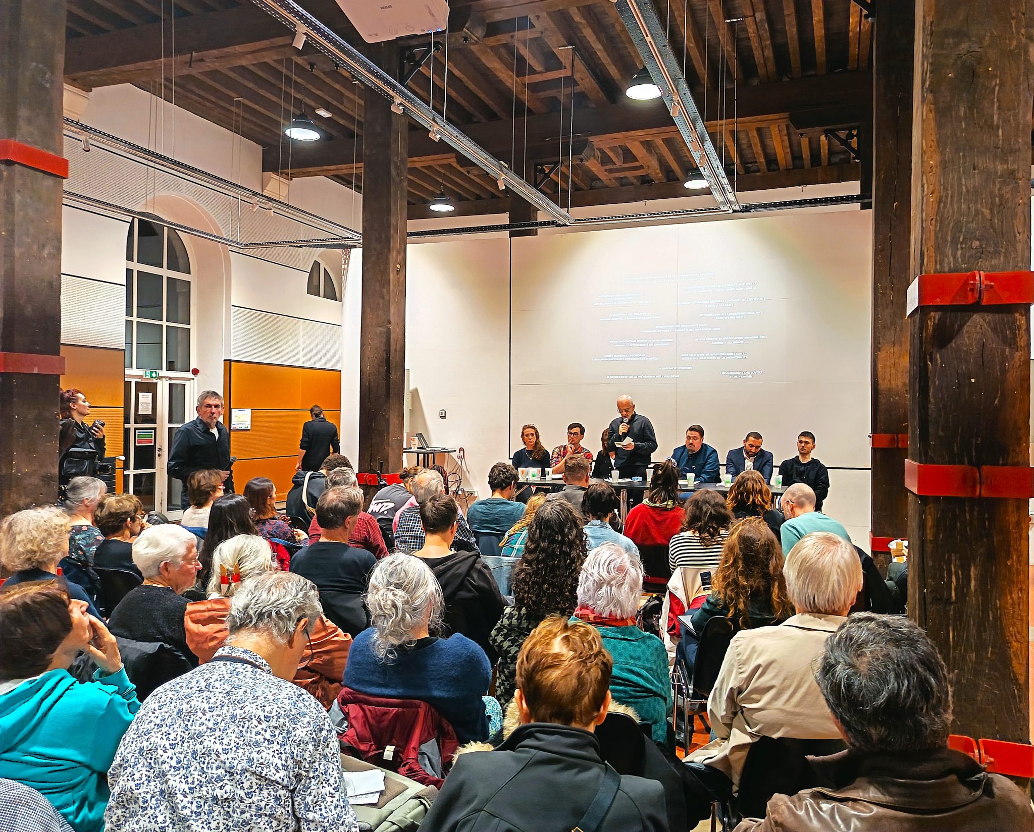 La volonté de soutenir la cause défendue par l’intervenant était également forte, qu’il s’agisse d’une solidarité symbolique, par leur présence, tel qu’exprimé par Guilaine, une maman venue avec son fils adolescent : « être là avec des Libanais·es, ça nous rapproche ». Mais également par un soutien pécuniaire : « ça nous permet de donner un coup de pouce » (une cagnotte a été mise en place pour soutenir la reconstruction des logements des habitants du Sud-Liban). Enfin, pour beaucoup, cette soirée représentait aussi une occasion de s’ouvrir à une autre culture, d’élargir leur horizon et d’envoyer un message de proximité au peuple Libanais.