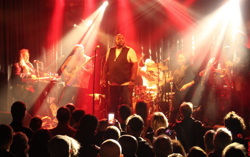 Quelques minutes plus tard, je retrouve Sugaray et son groupe sur scène. Le public est au rendez-vous, varié et bigarré. L’artiste attend que tout le monde soit bien entré dans la salle avant de commencer son show. En patientant, il fait le pitre avec les spectateurs situés devant la scène.