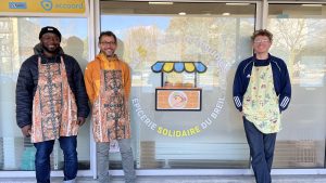 Salariés et bénévoles participent ensemble au fonctionnement du lieu. De gauche à droite : Moussa, David et Samuel. Le 14 janvier 2026 © Amélie Fortin