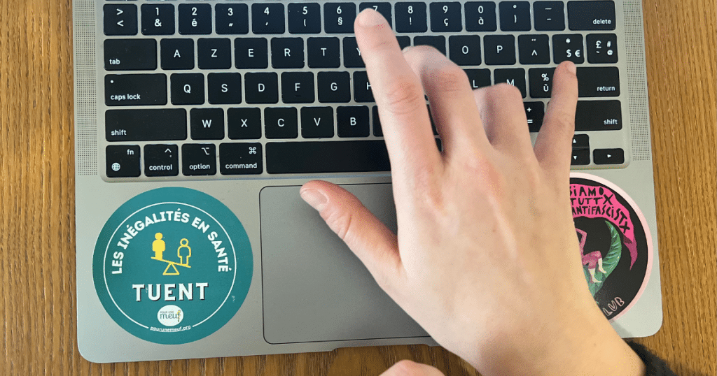Fondée en 2017, l’association Pour une M.E.U.F. (Pour une Médecine Engagée Unie et Féministe) regroupe des soignant·es engagé·es dans la lutte contre le sexisme et les discriminations dans le domaine de la santé et du soin. L’un de leur slogan : « Les inégalités en santé TUENT ». Le 3 février 2026 © Amélie Fortin