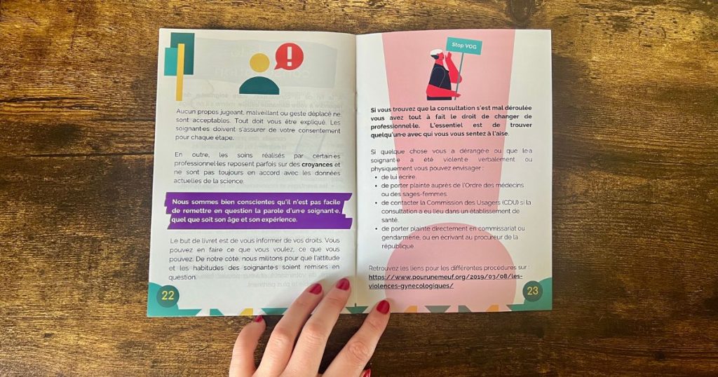 Elle précise aussi qu’« on a enseigné aux personnes soignées à obéir au docteur. » Cette autorité intériorisée peut alors retarder la prise de conscience des victimes, surtout quand l’acte est présenté comme médical. Afin de rééquilibrer la relation, le collectif souhaite jouer, à son échelle, « un rôle de sensibilisation vis-à-vis des patient·es, [pour] leur donner les clés pour connaître leurs droits ». À ce titre, la brochure déroulement de la consultation gynécologique est un guide d’auto-défense à l’usage des personnes nécessitant de tels soins.